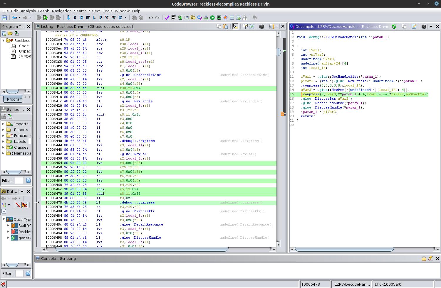 While I used an Apple PowerBook G4 to play Reckless Drivin’ when I was younger, I never used a PowerPC Mac at an age when I could understand things like QuickDraw, Resource Forks, and LZRW compression. So this project has been a really interesting learning experience to understand what is now part of computing history. The project is far from finished, and I have had parts of this post written up for over a year now, so I figured I might as well finally share it in hopes that others will also find it interesting.